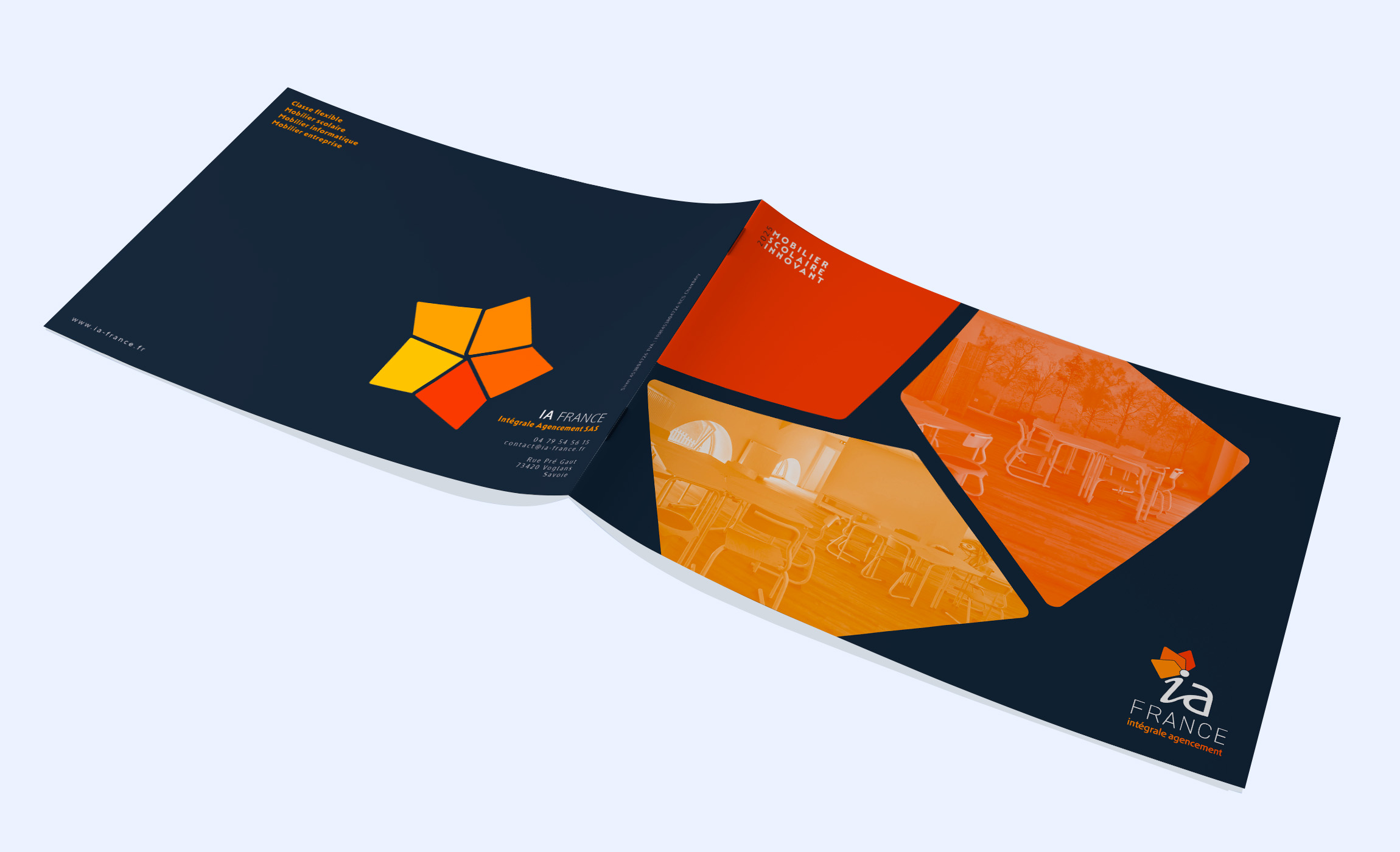 Depuis 2018, Clicher Studio accompagne IA FRANCE – Intégral d’agencement, fabricant de mobilier scolaire et professionnel, dans la structuration et la modernisation de sa communication globale.