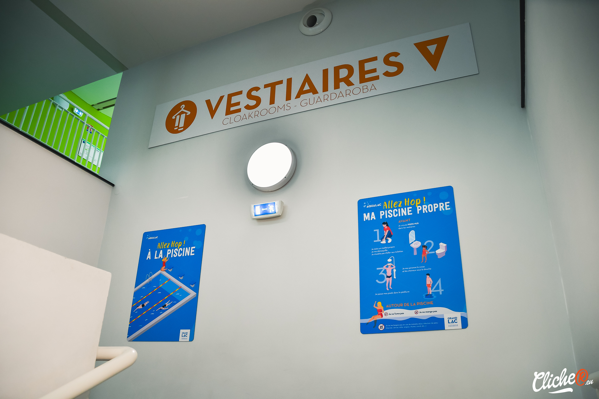 • Un fléchage directionnel clair et intuitif : Des panneaux directionnels modernisés avec des pictogrammes universels ont été déployés pour guider les visiteurs vers les vestiaires, piscines, douches et autres zones clés.